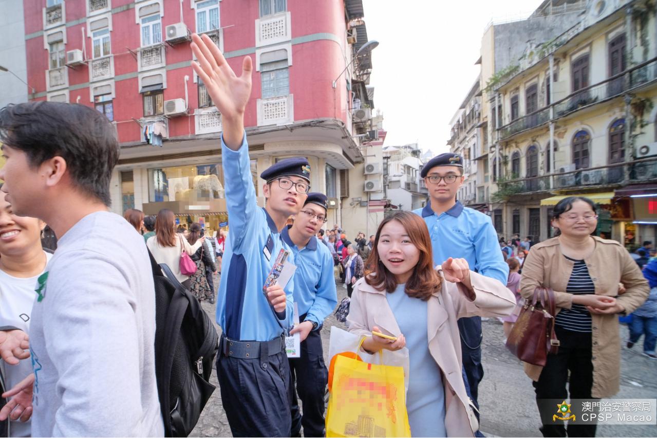 24日,治安警少年团到议事亭前地及大三巴一带旅游区,协助旅游警察服务旅客、与旅游警察并肩同行。