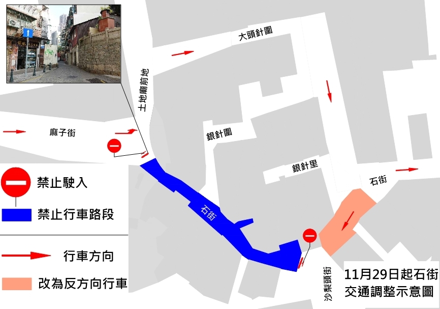 为提升交通安全,介乎土地庙前地与沙梨头街之间的一段石街由11月29日(周四)上午10时起试行禁止交通,为期一个月。交通事务局呼吁驾驶者留意。