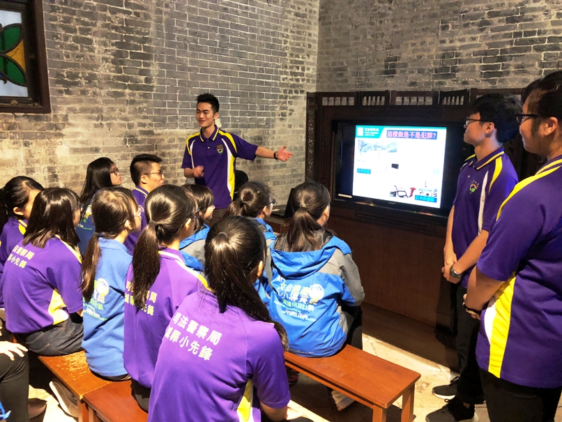 参观活动结束后,灭罪小先锋学员与小小导赏员进行互动交流。灭罪小先锋学员分享了在司警局所学到的防罪知识和技巧,并特别介绍了有关刑事毁损犯罪的法律规定、毁坏文化遗产的处罚,以及有关行为须承担的法律责任等法律知识。小小导赏员亦分享了参与导赏员实践培训计划的心得和体会。