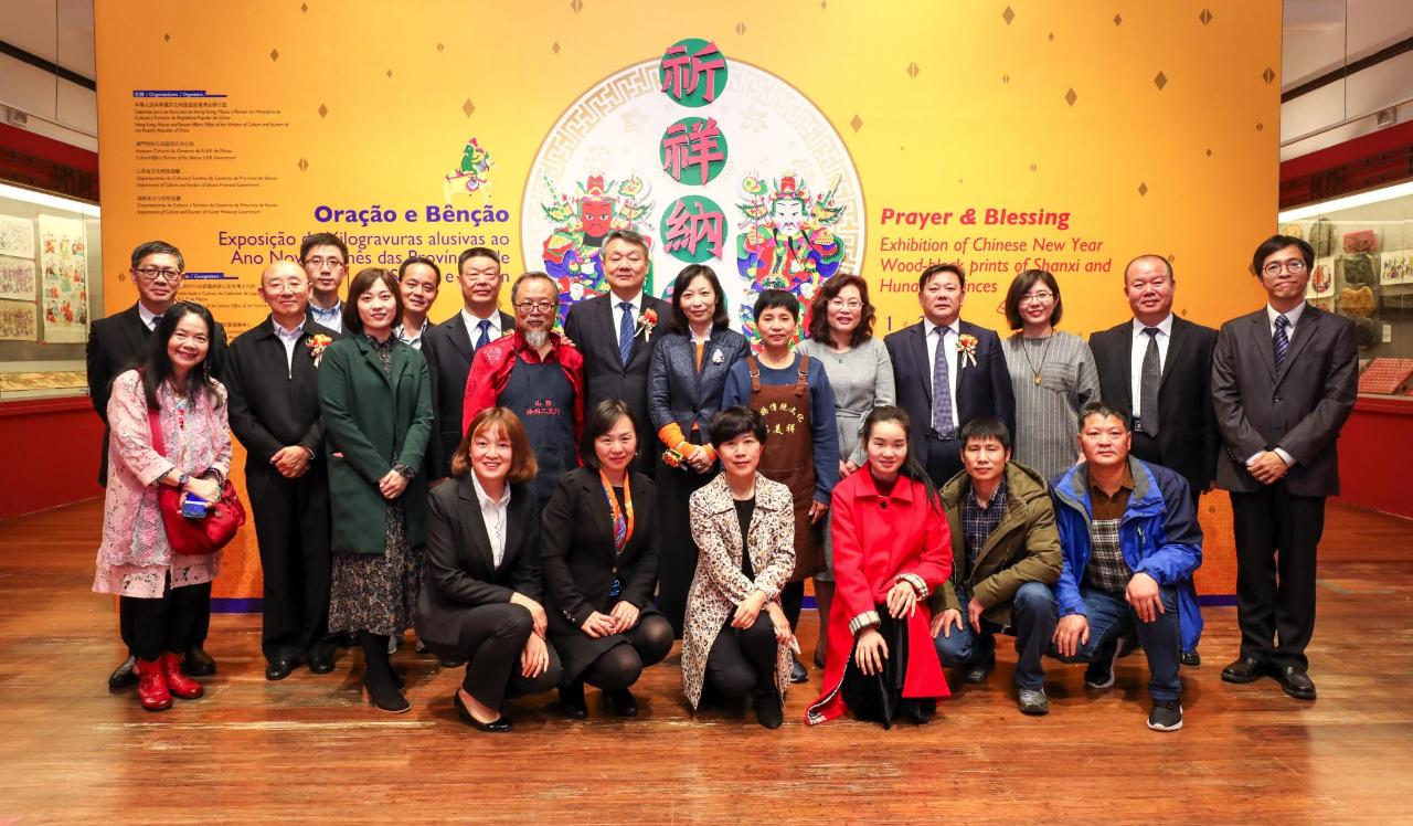 由文化局主办的“祈祥纳福──山西省和湖南省年画艺术展”于今天(1月31日)下午6时30分在卢廉若公园春草堂举行开幕仪式,由文化局局长穆欣欣、中央人民政府驻澳门特别行政区联络办公室宣传文化部副部长级助理邵彬、国家文化和旅游部民族民间文艺发展中心副主任王静、山西省文化和旅游厅副厅长郑中夏、湖南省文化和旅游厅副厅长鄢福初、澳门日报社长陆波及国家文化和旅游部港澳台办公室港澳处副处长汪勤出席主礼,现场气氛热烈。
