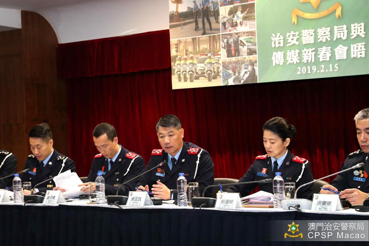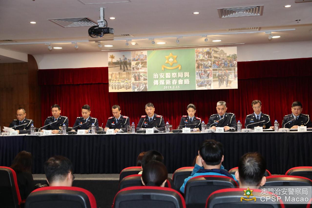 治安警察局秉持保安司司长提出的「主动警务」、「社区警务」及「公关警务」三个警务理念,持续增进治安警察局与传媒之间的友好合作,于2月15日上午在出入境事务大楼与传媒进行新春会晤,并由治安警察局局长梁文昌、副局长黄子晖、副局长刘运嫦、代副局长黄伟鸿主持,多位警务单位主管、本澳传媒代表及记者出席,双方就社会治安问题积极互动交流。