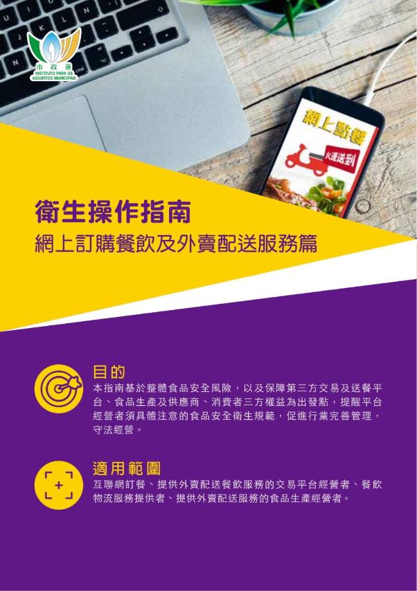 食品安全厅已制作一系列的食安指引及卫生操作指南,强化业界监督自身经营场所的卫生与食品安全能力。有关「食品卫生操作指南─网上订购餐饮及外卖配送服务篇」及「食品安全与环境卫生基础班」的宣传单张及详细资讯已上载至食品安全资讯网www.foodsafety.gov.mo 以及「食安资讯」手机应用程式(App),欢迎市民及业界浏览,获取更多食安资讯。