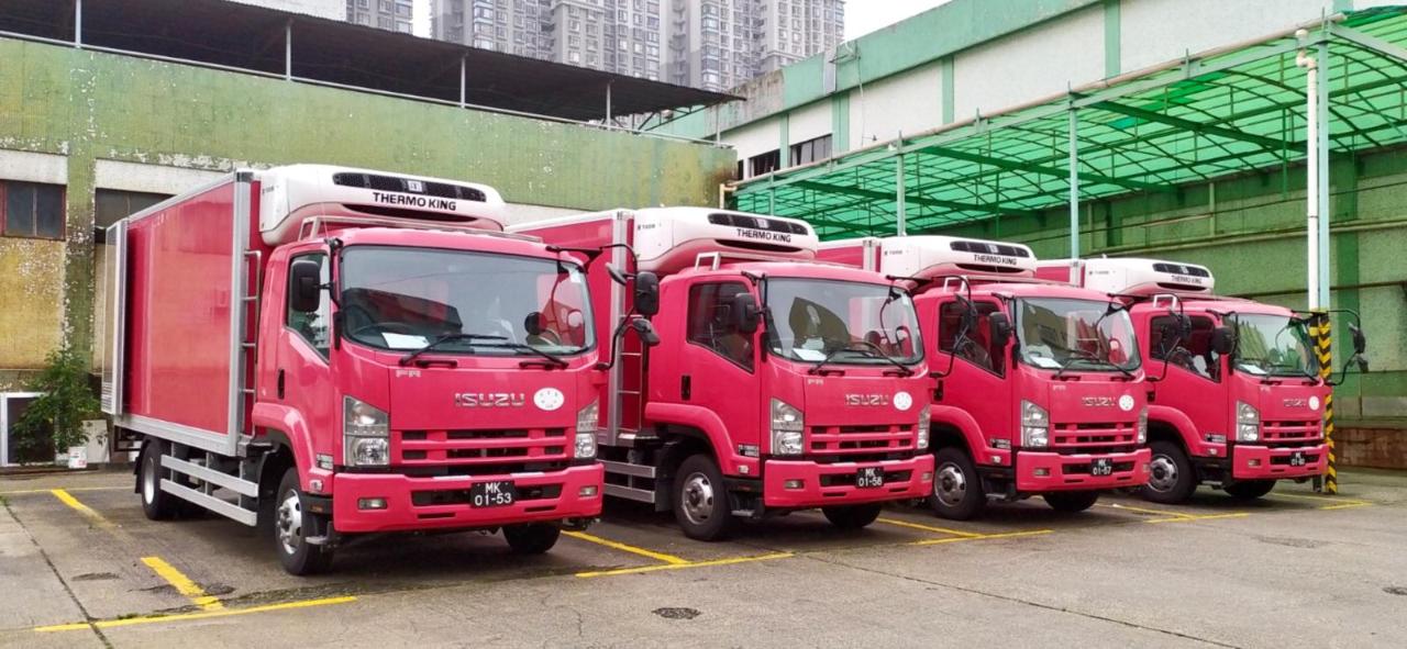 • 鲜肉经具冷藏设备的车辆运送至街市及零售点