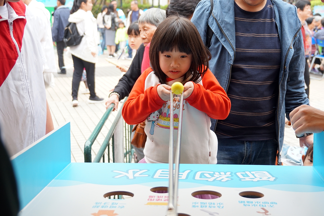嘉年华于下午2时30分至5时假佑汉街市公园举行,现场设有大型主题游戏“小水点游记”,小朋友手执巨型蓝色球,手足并用穿过重重管道和障碍物,最后把球安全运送到终点,以模拟供澳原水从西江经过泵站、水库、水厂等设施到达澳门,最后供应至每家每户的过程,游戏考验灵活度之余,亦从中认识到澳门的水源从何而来。嘉年华并设有多个以维护管理楼宇自来水系统、节约用水、认识咸潮为主题的摊位游戏和工作坊,有趣互动之余,大人和小朋友亦能从玩乐中学习到节约用水和供水知识。期间更上演了精彩的《威水超人》节水话剧,深受小朋友喜爱的“威水超人”和“水汪汪姐姐”与市民玩节水游戏。嘉年华现场气氛热闹,吸引了众多市民参与。
