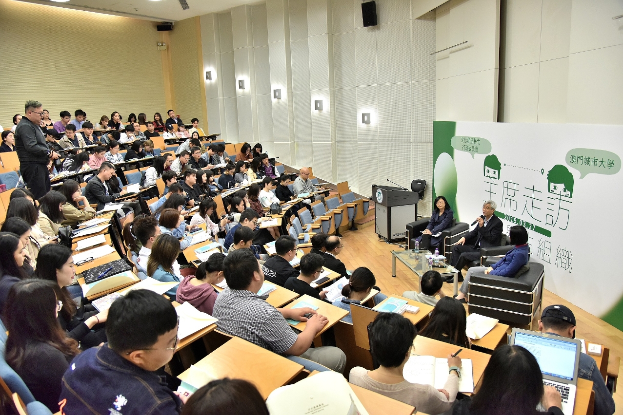 澳门文化产业基金于三月二十七日下午走访澳门城市大学,与校长张曙光教授及人文社会科学学院、商学院、国际旅游与管理学院和金融学院等有关负责人会谈,商讨未来合作,并与近两百名城大学生就“大湾区规划与澳门文化产业和旅游的结合”专题进行交流。行政委员会主席梁庆庭表示,特区政府在不同方面支持文化产业发展,希望城大在文化产业管理和研究中发挥作用,协助澳门文化产业的未来发展。