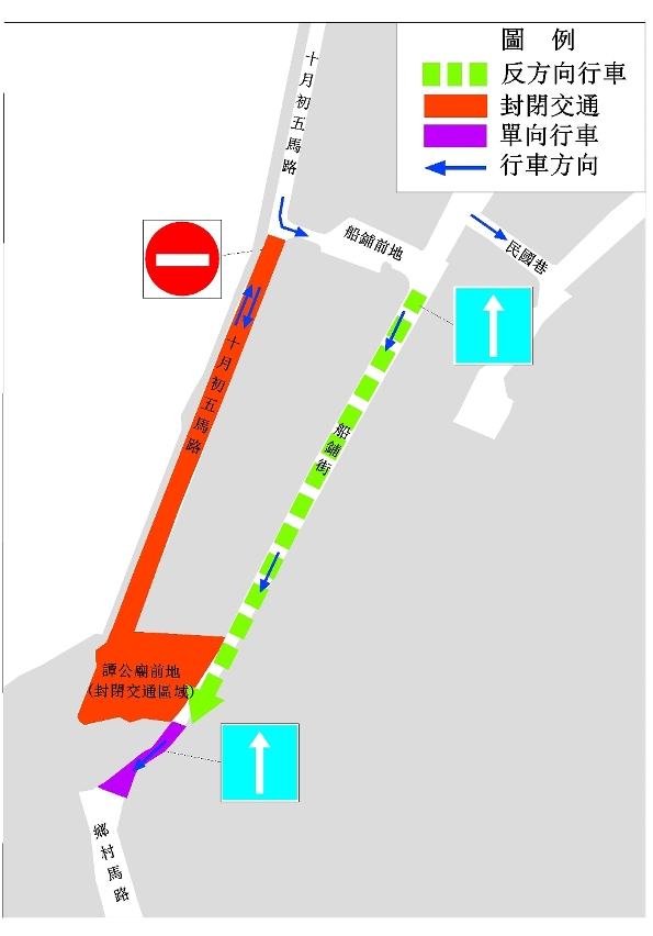 配合路环街坊四庙慈善会举办谭公宝诞公演粤剧,4月8日(周一)至5月29日(周三),谭公庙前地及周边道路实施多项临时交通措施(详见附表)。