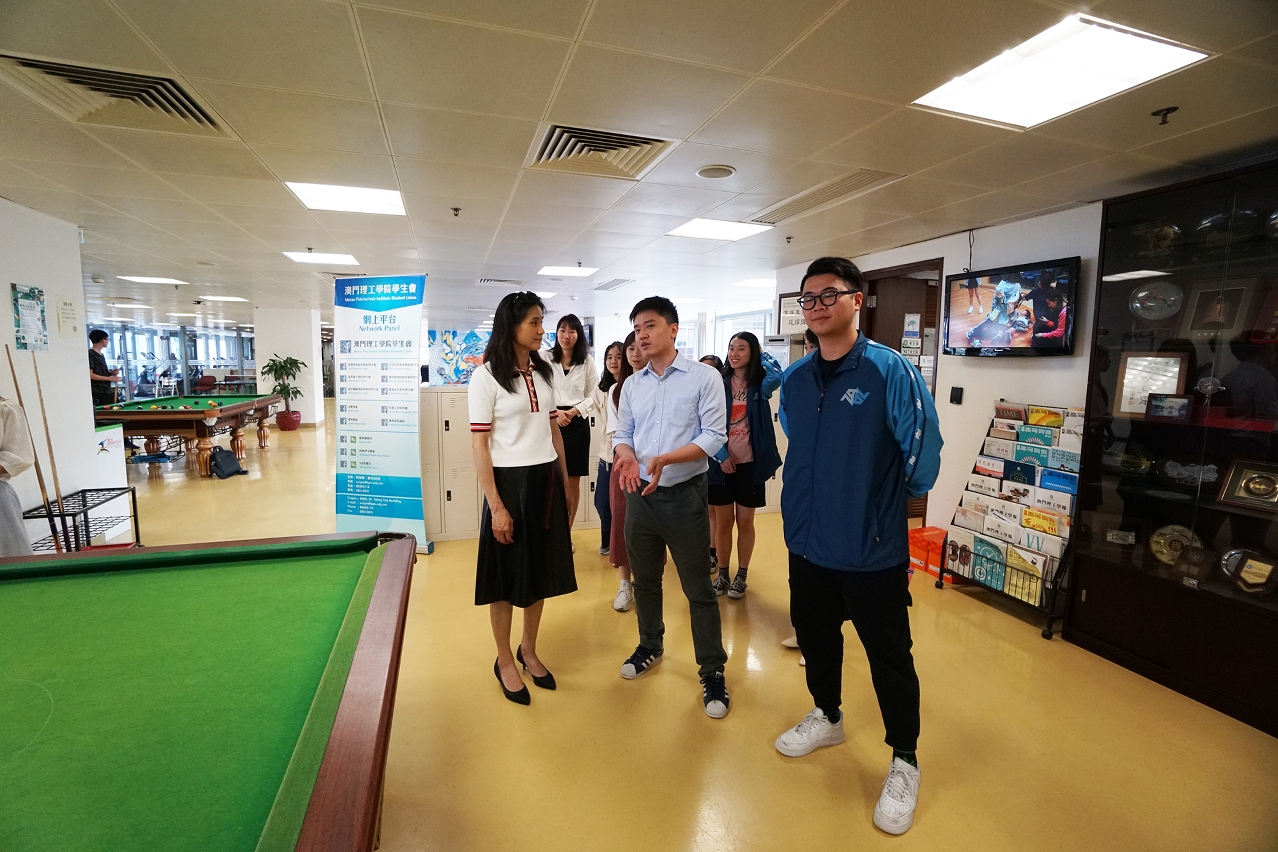 黄穗文早前走访澳门理工学院学生会,获学生会理事长汪宗隽、内务副理事长杨玲玲、外务副理事长辜钟欣等人员的热情接待,并在他们的陪同下,参观学生会的办公室、学生休憩设施等,瞭解学生会日常运作情况。