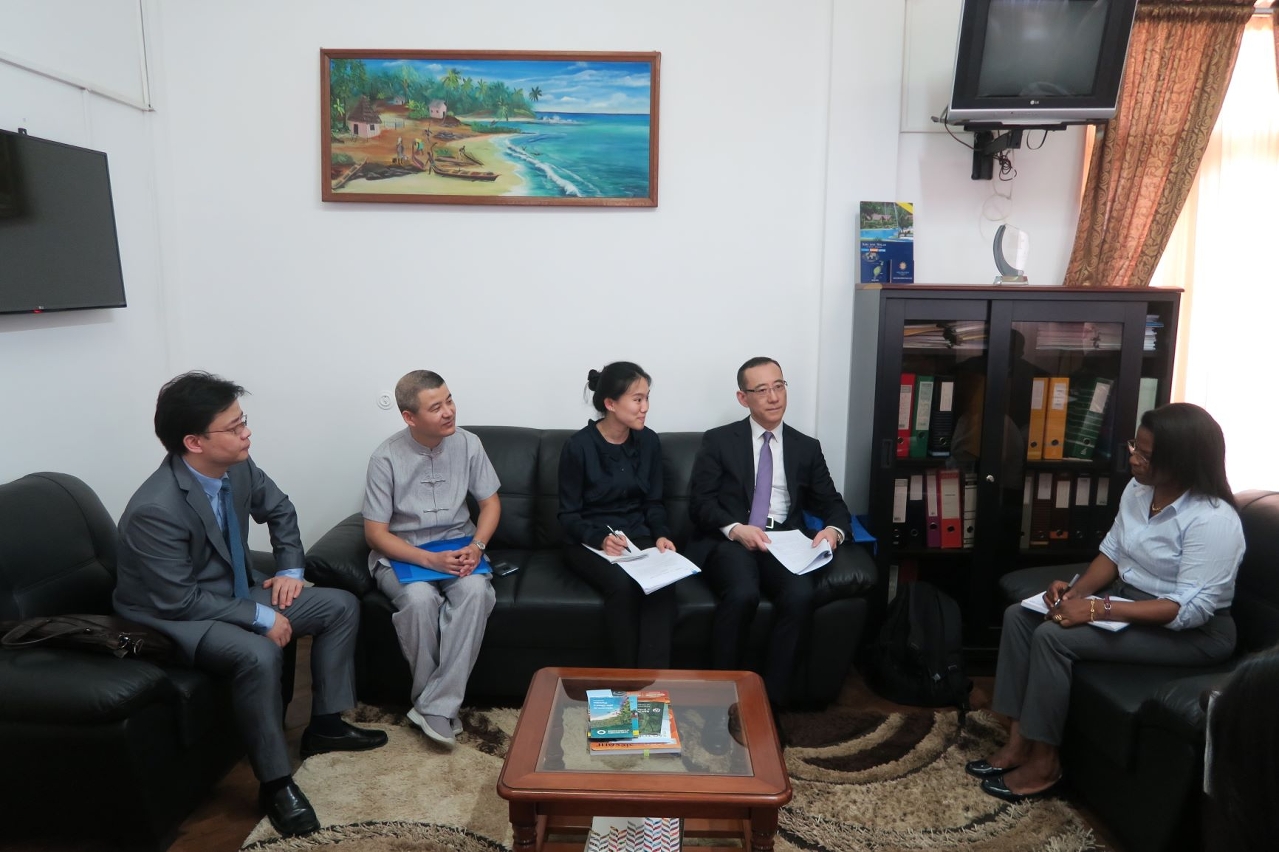 在圣普期间,代表团先后拜会了圣普计划、财政和海洋经济部长奥斯瓦尔多,旅游、文化、贸易和工业部长拉夫雷斯及外交、合作和海外侨民部长平托,并赴中国驻圣普大使馆进行交流座谈。双方就发挥中葡论坛和澳门中葡商贸合作服务平台作用,充分利用中葡合作发展基金,共同推动双边经贸关系发展,特别是中小企业和旅游业的持续发展,并通过第二届中国国际进口博览会推广圣普特色产品和服务进入中国市场,加强教育领域合作等议题进行交流。双方还就今年7月即将在圣普举行第十四届中国与葡语国家企业经贸合作洽谈会,以及2020年第六届部长级会议的筹备交换意见。此外,代表团实地考察了中国援助圣普农技二期项目。