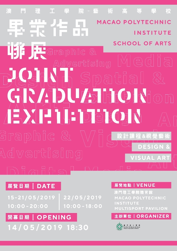 澳门理工学院设计及视觉艺术毕业作品联展将于5月14日开幕,5月15日至22日对外开放,开放时间为上午10时至晚上8时,5月22日则开放至下午6时,展览地点为理工体育馆,欢迎各界人士莅临参观指导。