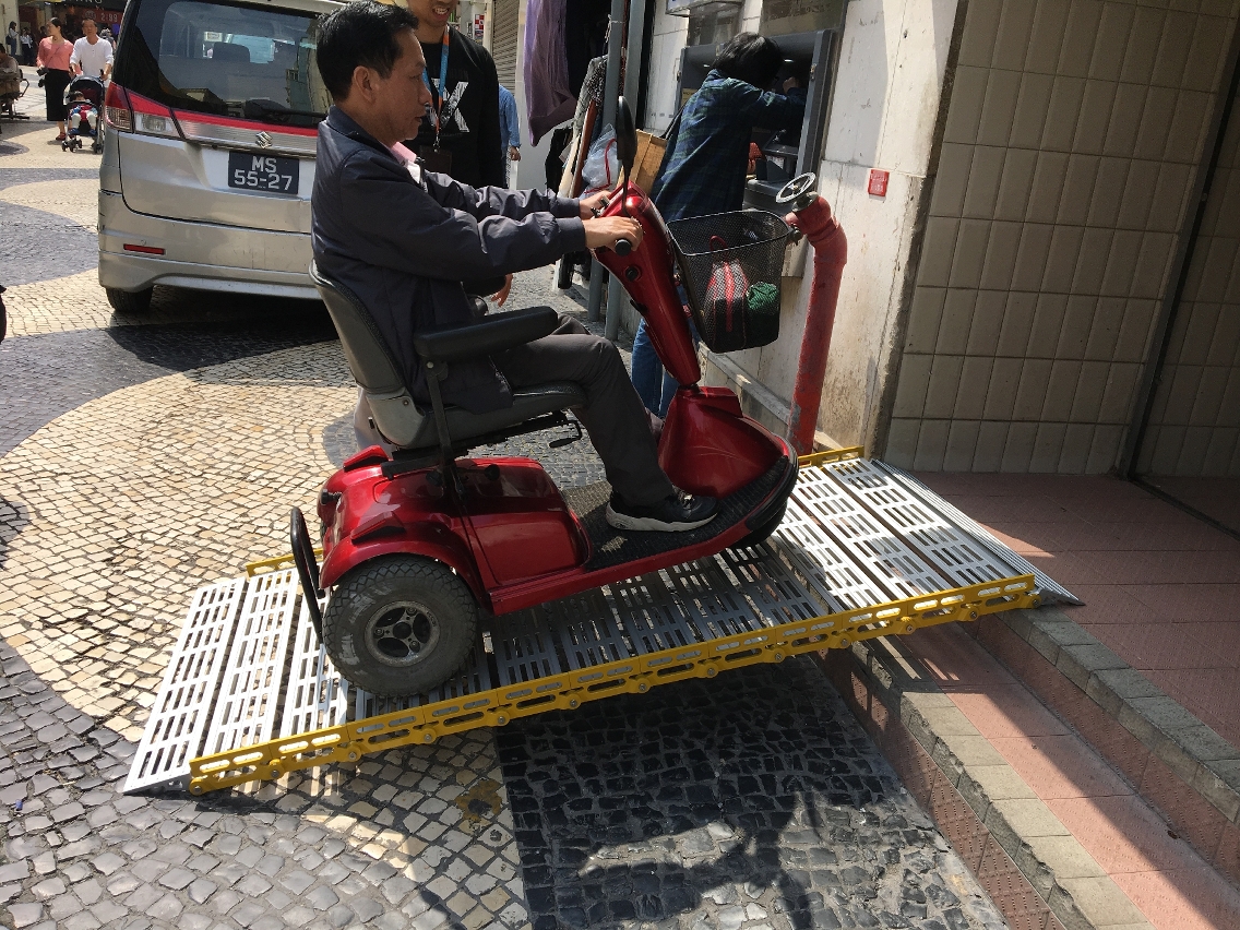 其中,在服务肢体障碍人士的无障碍优化工作方面,社工局已在4个对外服务点进行了63项次无障碍设备优化项目,包括:增加楼梯/洗手间/升降机的扶手、改建斜坡通道、更换低位置的升降机按钮控制面板、优化无障碍洗手间等。考虑到部分场所受到实际环境限制而无法进行斜坡改建工程,社工局购置了四套卷板斜台,以供轮椅使用者临时上落之用,同时亦购置了两台活动楼梯机,以备当青洲灾民中心升降机受台风及水浸影响而无法正常运作时,可协助轮椅使用者进入避险中心。而在协助社会服务设施进行服务肢体障碍人士的无障碍改善工作方面,2018年已完成1,560项次的无障碍设备优化项目,包括:优化通道及入口的斜坡和楼梯、增加无障碍柜台、优化无障碍洗手间及淋浴间、增设紧急呼叫系统等。