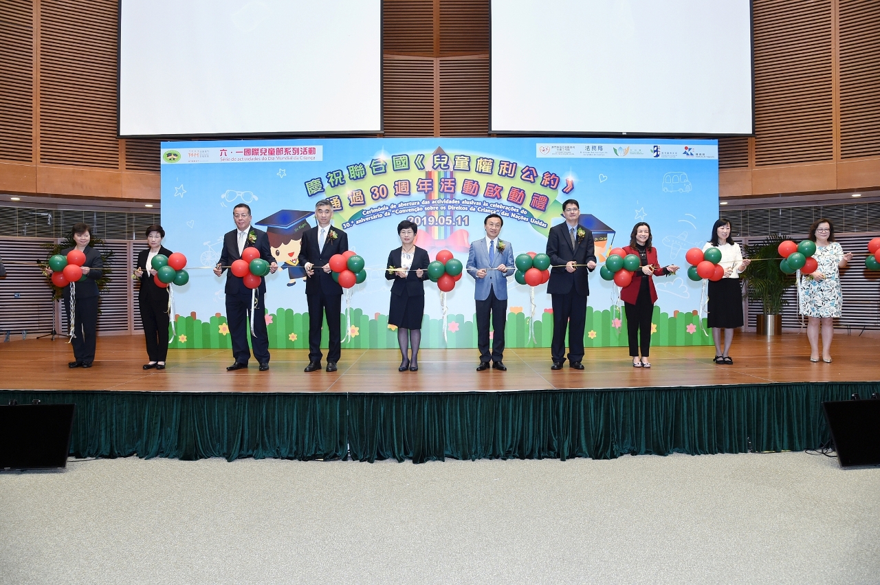 由社会工作局联同法务局、市政署、教育暨青年局以及体育局组成的“六.一国际儿童节组织委员会”合办“六.一国际儿童节系列活动2019”之“庆祝联合国《儿童权利公约》通过30周年活动启动礼”,今(11)日在澳门科学馆顺利举行,目的为提升社会大众对儿童权利的关注与重视。