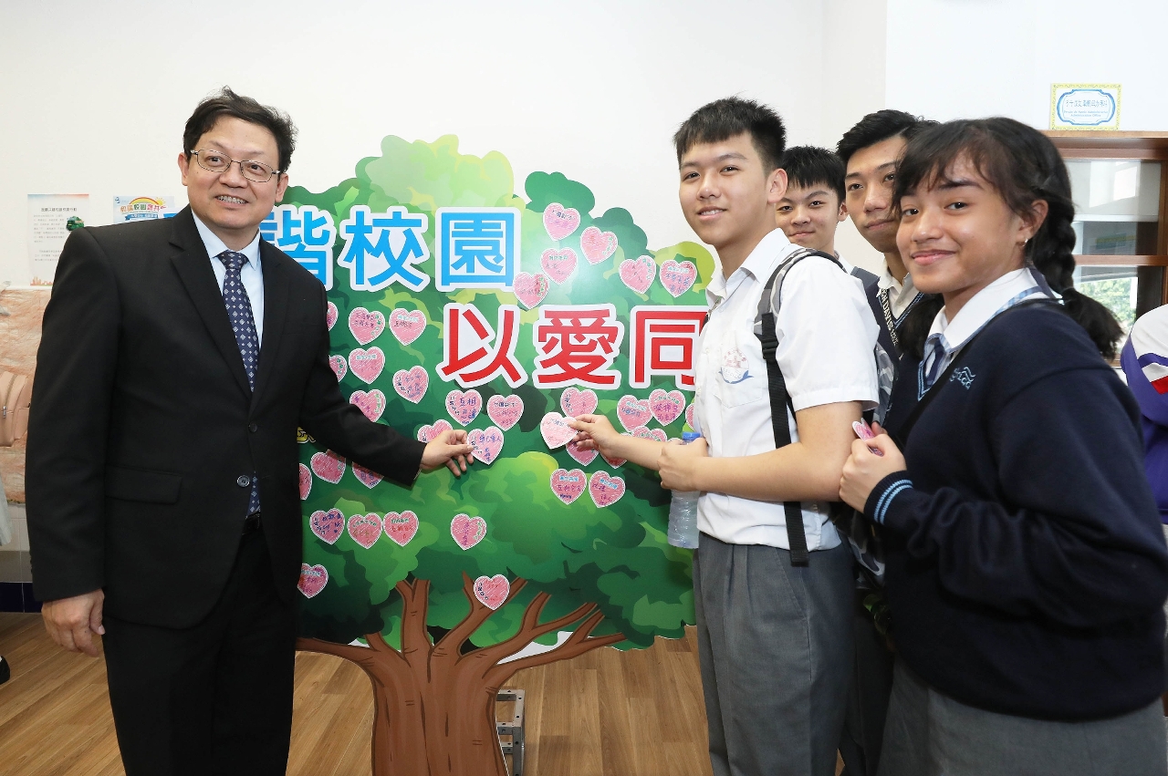 是次首播仪式特别安排了一棵爱心树,让学生贴上共建和谐校园的标语,并承诺不欺凌,不袖手旁观、接纳差异,尊己重人、以爱同行。在今天的启动礼后,教青局会继续到各校推动师生共建“和谐校园”的活动。