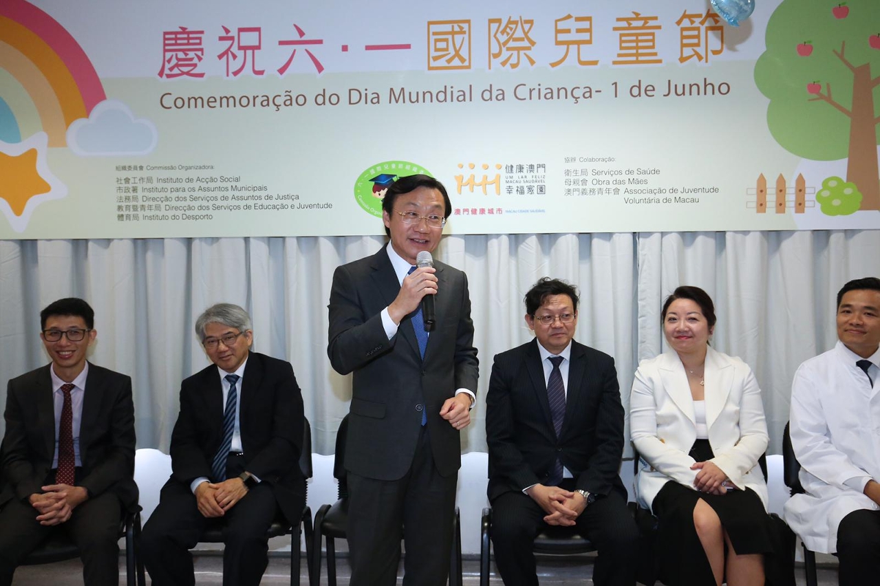 六月一日儿童节,社会文化司司长谭俊荣率辖下官员前往本澳镜湖医院、仁伯爵综合医院探访和慰问住院儿童,并向儿童及家长报告习近平主席回信给澳门濠江中学附属英才学校的小朋友们的喜讯,转达习主席对澳门儿童的无比关心和节日问候。