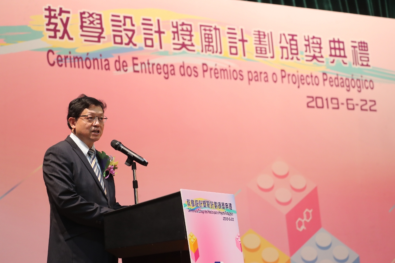 老柏生在致辞时表示,感谢学校和教师积极参与“教学设计奖励计划”,并祝贺每一位得奖的教学人员。期待教师们不断探索、不断创新,积极钻研更多具启发性的教学活动,让学生更投入和更热爱学习,让年青一代有热诚、信心和能力面对二十一世纪的挑战,为国家、为大湾区、为澳门的发展作出贡献。
