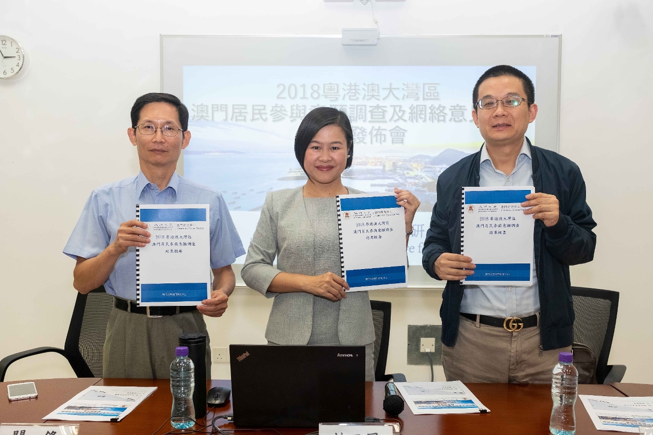 澳门大学澳门研究中心粤港澳大湾区政策研究小组今(27)日公布「2018粤港澳大湾区澳门居民参与意愿调查及网络意见调查」结果。
