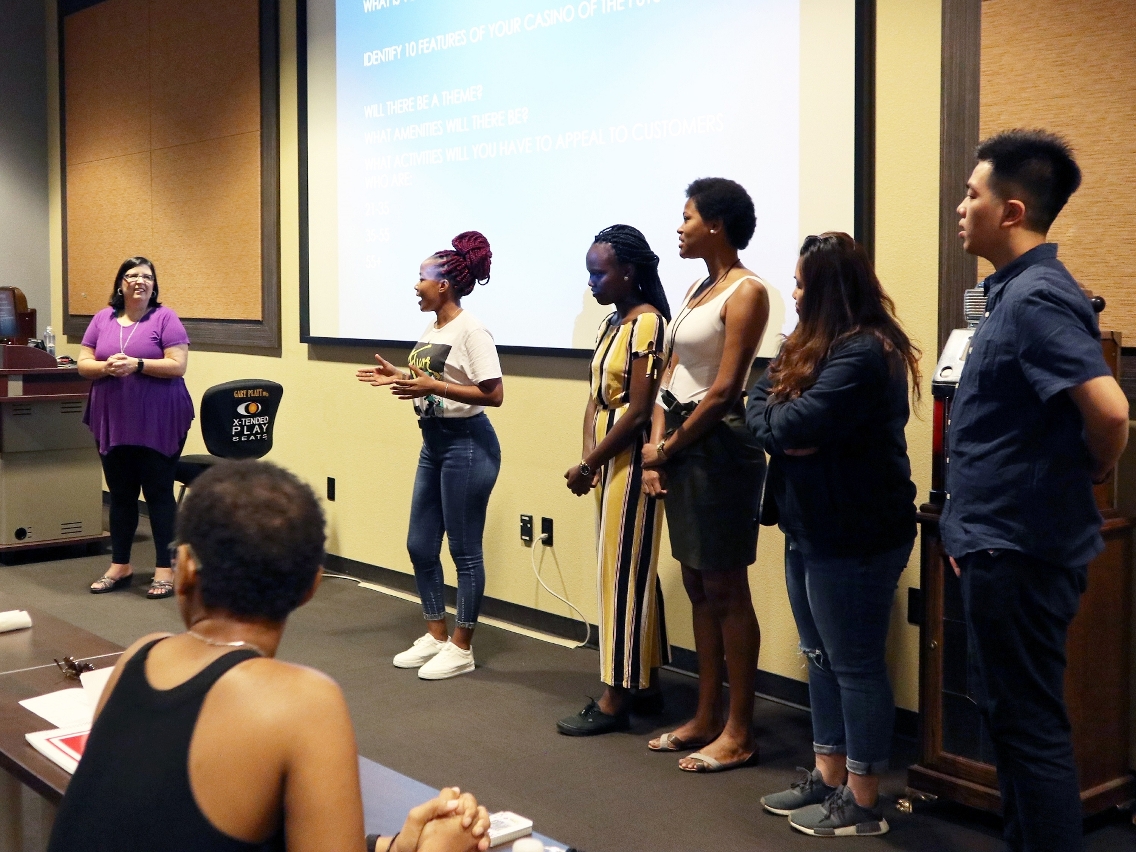 内华达大学国际博彩监管中心学者和业界专家为该批交流学生授课,内容涵盖美国博彩发展历史、 博彩业的最新议题 、娱乐场的未来发展趋势、电子竞技投注、娱乐场失误产生的顾客诉讼赔偿及个案、全球体育博彩投注的运作、娱乐场骗案、娱乐场禁足令及黑名册等多项课题。除参加课堂外,交流生一行还实地考察当地多家着名博彩企业、博彩科技公司和娱乐表演团体,与公司管理团队会面和交流,亦获表演团体的邀请,欣赏娱乐表演节目,深度了解拉斯维加斯非博彩元素的发展。