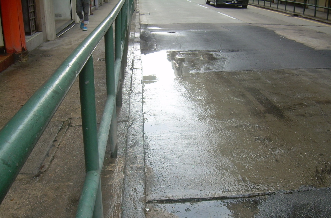 市政署早前接获市民投诉,反映一段位于荷兰园大马路近若翰亚美打街及西坟马路之路段出现渗水现象,随即派员对有关路段进行检查,初步发现水源由混凝土路面渗出,同时混凝土路面已出现因渗漏而损坏情况。为免路面损坏及渗水问题影响道路驾驶者安全,市政署已采取紧急措施,于上述路面进行临时沥青修补,并于行人道围栏加设胶板,防止车辆行经时溅起水花对行人造成不便。