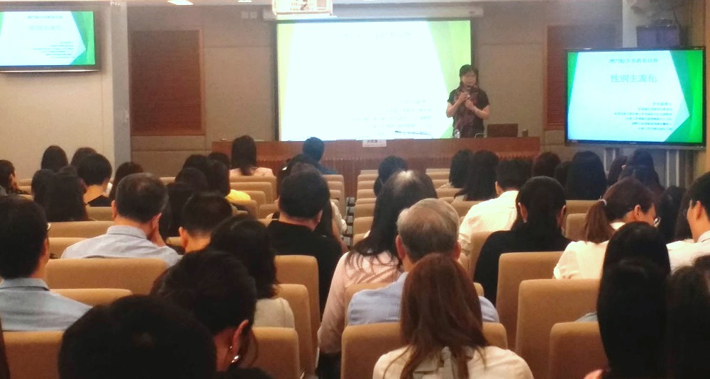 社会工作局韩卫副局长致辞表示,“澳门妇女发展目标”是澳门特区首份妇女事务发展的政策规划,内容根据1995年联合国第四次妇女大会通过的《北京宣言》和《行动宣言》为根本,结合本澳实际情况而制订。期望透过是次讲座,让政府部门能更深入了解有关“澳门妇女发展目标”的实际内容及相关工作,加强认识“性别主流化”概念及具体落实方向,以便更好地共同推动“澳门妇女发展目标”的各项工作。是次专题讲座邀请了澳门理工学院公共行政高等学校副教授赖伟良博士,以及香港浸会大学社会工作系副系主任洪雪莲博士担任主讲嘉宾,主要概述“澳门妇女发展目标”的源起;介绍“性别主流化”观点及分享邻近地区经验和个案。