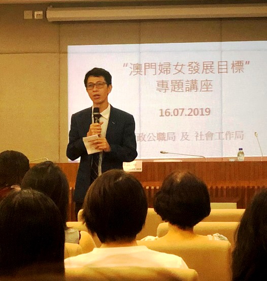 行政公职局与社会工作局于7月16日在公务人员培训中心演讲厅举办“澳门妇女发展目标”专题讲座,共有127名公共部门领导及公职人员参与。讲座内容主要介绍“澳门妇女发展目标”的源起,有关 “性别主流化”的观点以及分享邻近地区的经验等。