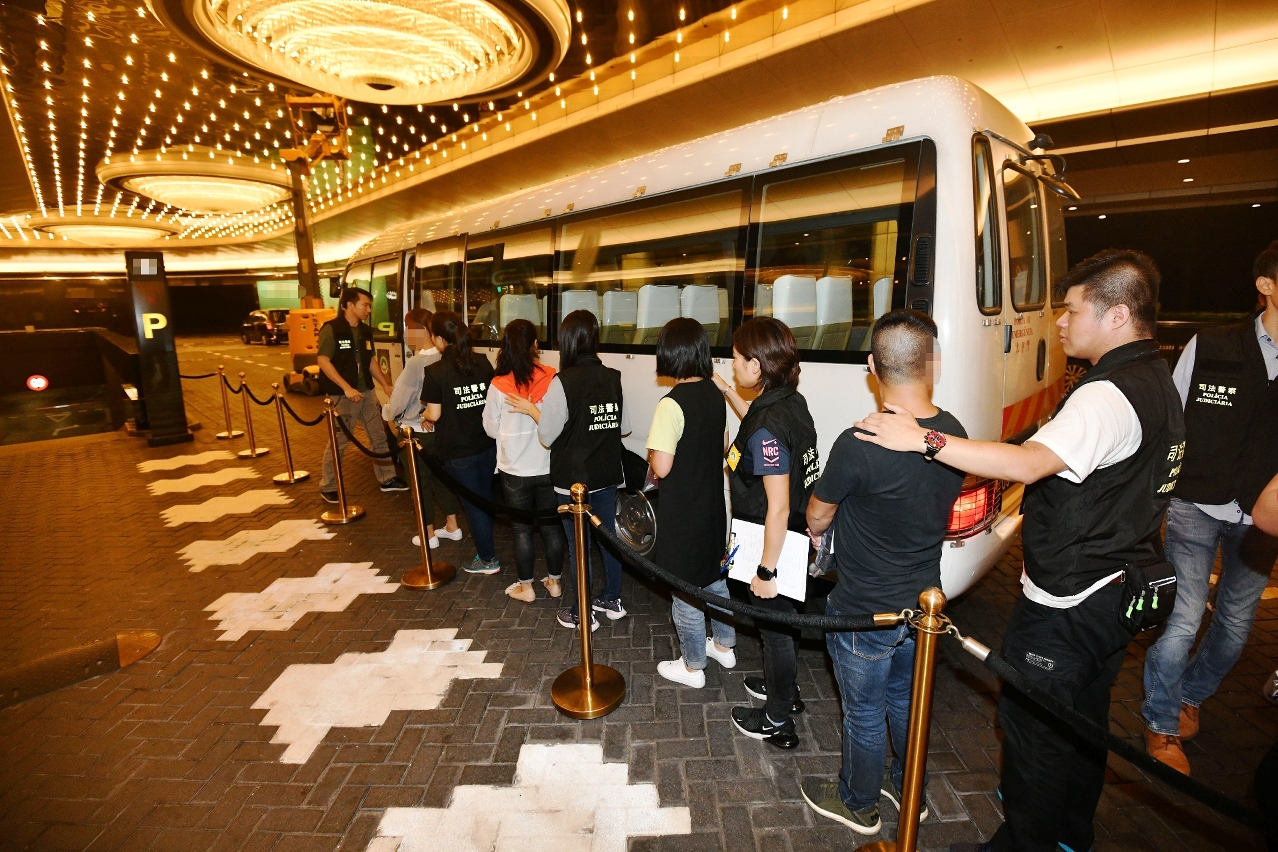 行动中合共截查了163人(129男34女),当中2男4女涉及非法兑换活动(俗称“换钱党”),4名男子为活跃于娱乐场人士(俗称“扒仔“);上述10人被带返司警局作进一步调查,经完成身份认别程序后,被移送治安警察局出入境管制厅处理。