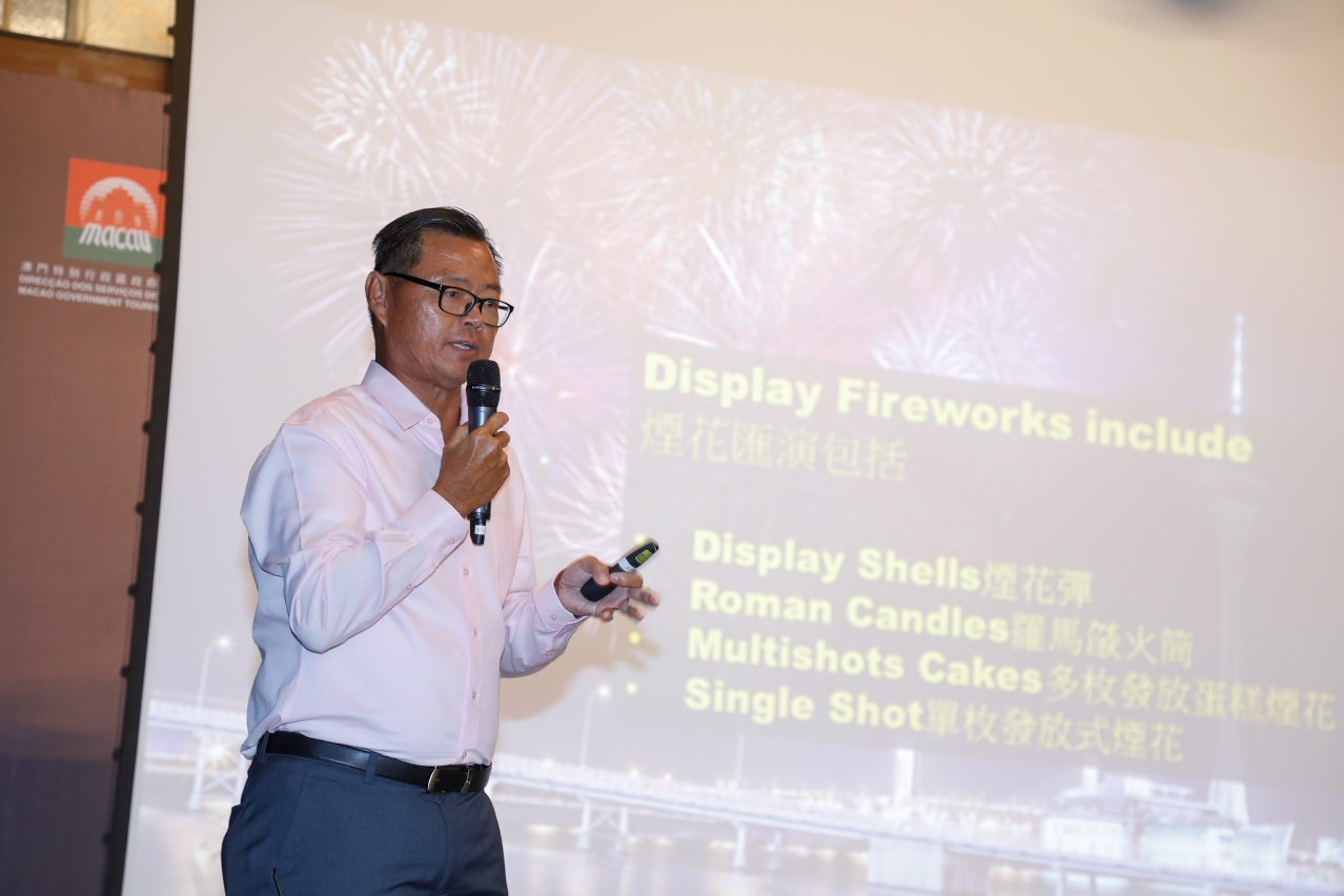 讲座先由金满堂讲解烟花的历史起源、种类、制造过程、恶劣天气下烟花汇演的安排及指引等,并以澳门国际烟花比赛汇演为例,深入浅出地分享举行烟花汇演的程序和安排,从烟花主题、音乐、创作性,到燃放位置及安全须知等,让参加者多角度认识幕后工作团队在打造绚丽烟花盛宴的准备过程和所付出的努力。