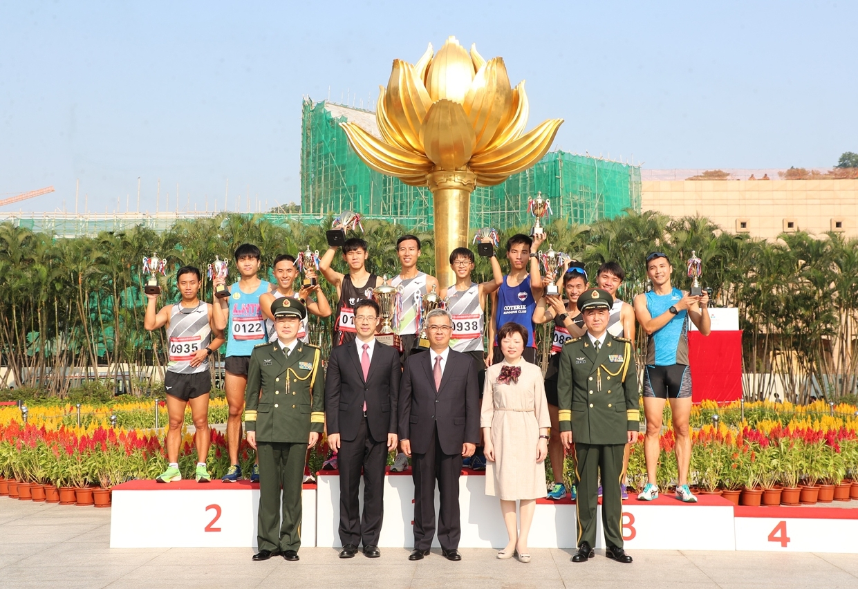 跑步运动员返抵终点后随即进行颁奖,颁奖嘉宾包括澳门特别行政区代理行政长官黄少泽先生、中央人民政府驻澳门特别行政区联络办公室秘书长王新东先生、外交部驻澳门特别行政区特派员公署特派员沈蓓莉女士、中国人民解放军驻澳门部队司令员徐良才大校及中国人民解放军驻澳门部队政治委员孙文举大校。