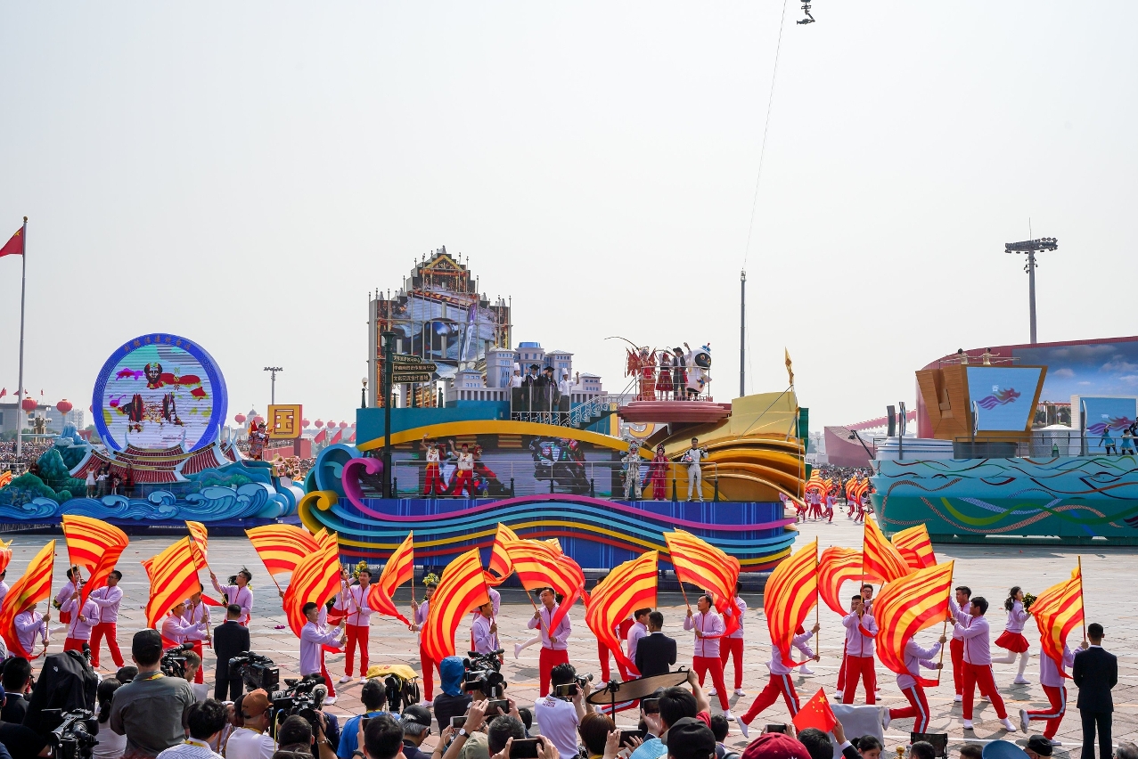 10月1日北京天安门广场隆重举行庆祝中华人民共和国成立70周年大会。庆祝大会之后,随即举行盛大的阅兵式和群众游行。在群众游行的队伍中,由各省、直辖市、自治区以及香港、澳门和台湾等34辆花车组成的“中华儿女”方阵引人注目。