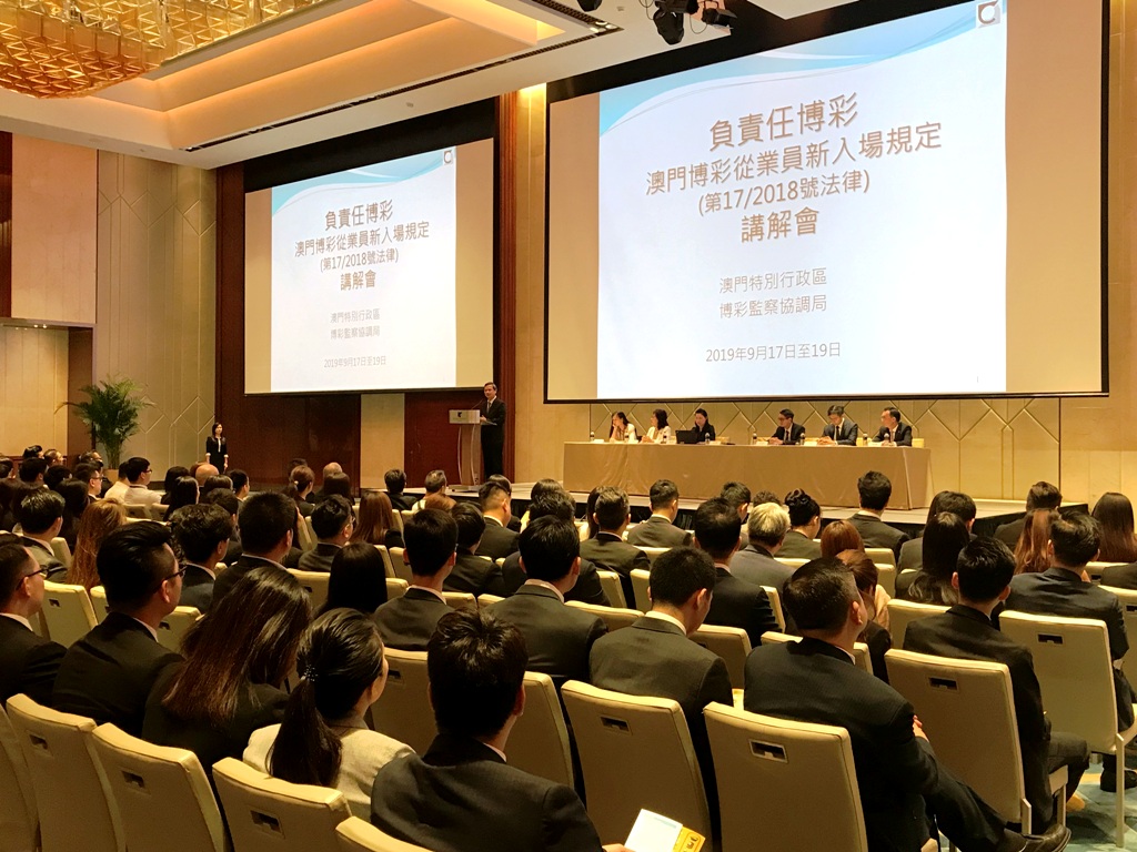 经第17/2018号法律修改的第10/2012号法律《规范进入娱乐场和在场内工作及博彩的条件》(下称“进入娱乐场法”)中有关博彩从业员工余时间禁止进入娱乐场的规定将于2019年12月27日起正式生效。为让博彩从业员清楚掌握有关规定及执行措施,博彩监察协调局于早前为六间博彩企业举行讲解会,出席者包括博彩企业及博彩中介人雇员。