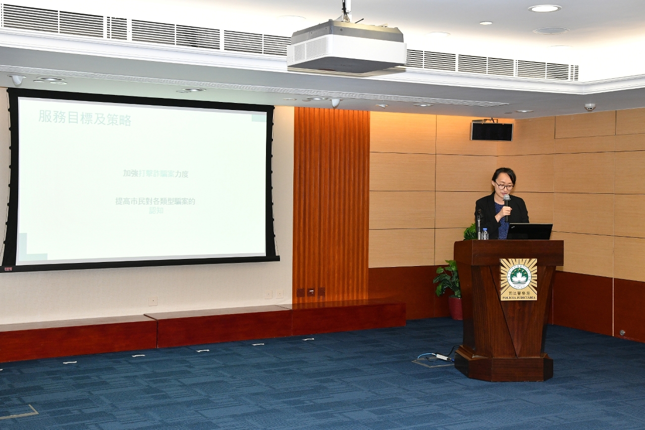 会议于2019年10月15日下午在司警局总部大楼举行,香港警务处商业罪案调查科高级警司郑丽琪及反诈骗协调中心负责人警司洪毅等一行7人,与司警局博彩及经济罪案调查厅厅长梁文照、经济罪案调查处处长陈楚民、资讯罪案调查处处长苏兆强及相关部门的主管人员等举行会议。