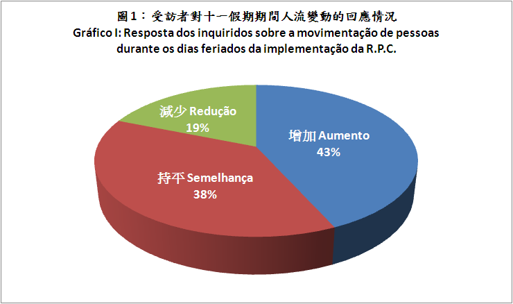 总括而言,内地十一假期对本澳饮食及零售业有积极推动作用。其中以路氹度假购物中心、氹仔官也街、白马行及议事亭前地、大三巴、新口岸以及南湾及新马路的人流及营业额受十一假期效应推动较大。调查发现在十一假期期间大部份区域店铺的人流与营业额呈正比关系,人流较平日增长的区域,其营业额往往亦录得一定的升幅。