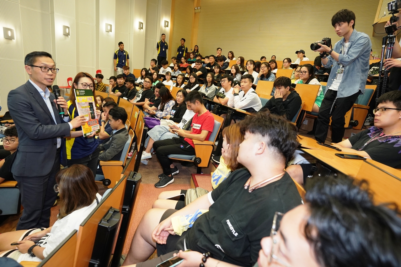 短讲结束后随即进入互动交流环节,在场学生踊跃发问。多名学生对警方预防和打击电信诈骗采取的措施感到兴趣,有学生关注相关犯罪多为境外作案,警方在进行打击时,如何克服各地间司法制度不同而产生的困难。薛局长坦言,电信诈骗犯罪具有跨域性、隐蔽性、高科技及随机性等特点,警方在侦查方面遇到不少困难和挑战;针对电信诈骗犯罪的特点,司警局对被害人、犯罪者及犯罪环境等不同方面采取相应的预防和打击措施,并以预防犯罪为主,持续加强与本澳相关政府部门、机构和民间团体等合作,多渠道、多方式进行防骗宣传,提升市民的防骗意识,警民联手防范电信诈骗犯罪。打击犯罪方面,司警局透过与内地及邻近地区警方建立的警务合作机制,互通情报,采取联合侦查行动,先后捣破多个跨域电信诈骗集团,以及多次成功截回被骗款项,可见警务合作机制取得成效。