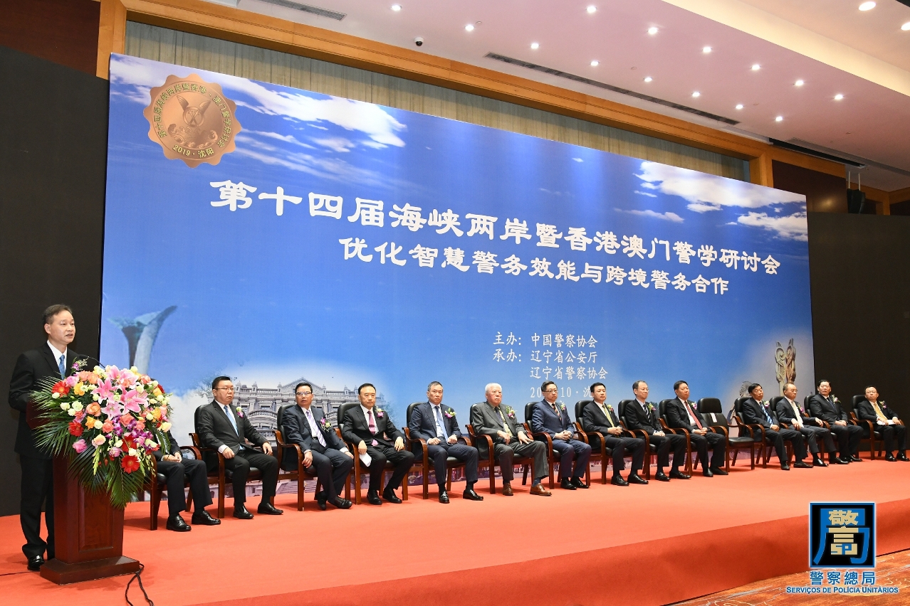 “第十四届海峡两岸暨香港、澳门警学研讨会”于十月二十三日至二十四日在辽宁省渖阳市举行。公安部常务副部长、中国警察协会候任会长王小洪、台湾刑事侦防协会荣誉理事长辜仲立、理事长陈翔立、香港警务处处长卢伟聪、入境事务处处长曾国卫及澳门警察总局局长马耀权等分别率领来自海峡两岸和香港、澳门警察部门、警察院校的警界同仁和专家学者共二百余人参与。香港中联辧警联部邓兆丰副部长、澳门中联办警联部于成平部长及辽宁省副省长、公安厅厅长王大伟列席会议。