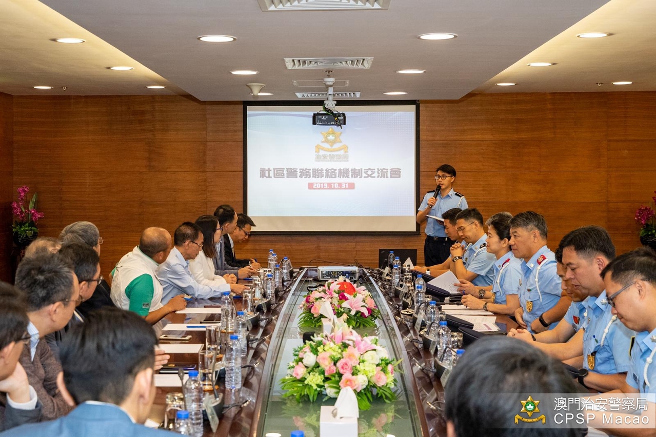 10月31日上午,治安警察局梁文昌局长主持「社区警务联络机制」交流会,邀请多位社团及坊会代表交流社区治安情况及警民合作等方面的意见。