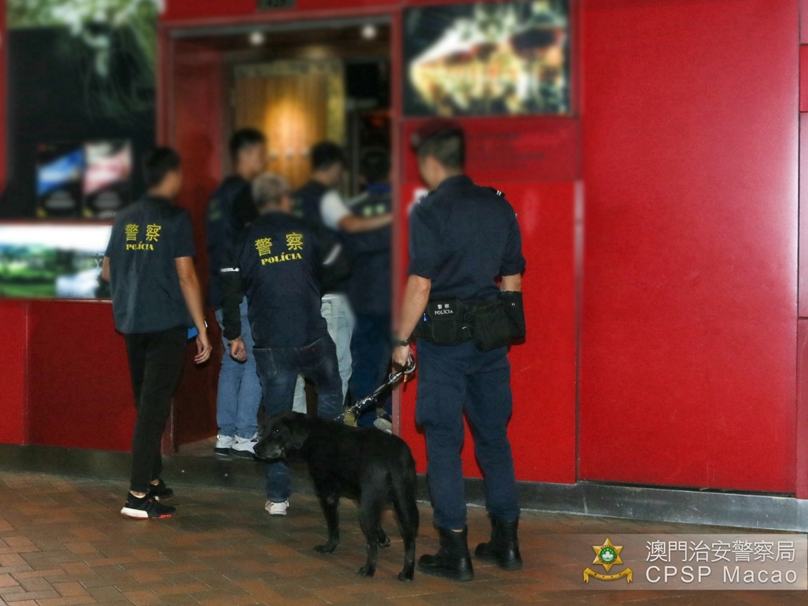 在警察总局统筹下,治安警察局展开「雷霆2019」行动,确保本澳社会安宁及公共秩序安全。于11月7日至8日凌晨,治安警察局海岛警务厅、情报厅及特警队警犬组共派出20名人员,分别于路氹金光大道一带截查可疑人士,以及于本澳各区巡查多间卡拉OK及酒吧,打击各种不法行为。