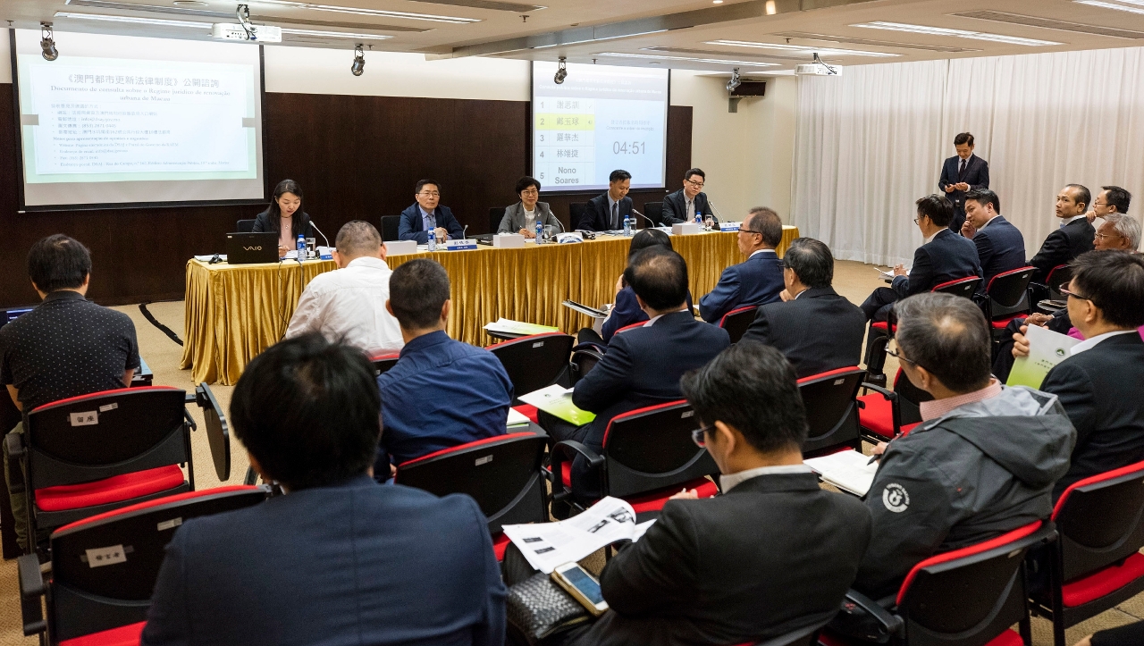 咨询会由行政法务司司长陈海帆主持,法务局局长刘德学、土地工务运输局城市规划厅厅长麦达尧、房屋局研究厅厅长任利凌及法务局法规草拟二处处长梁颖妍出席。来自8个专业团体的代表逾50人出席了咨询会。