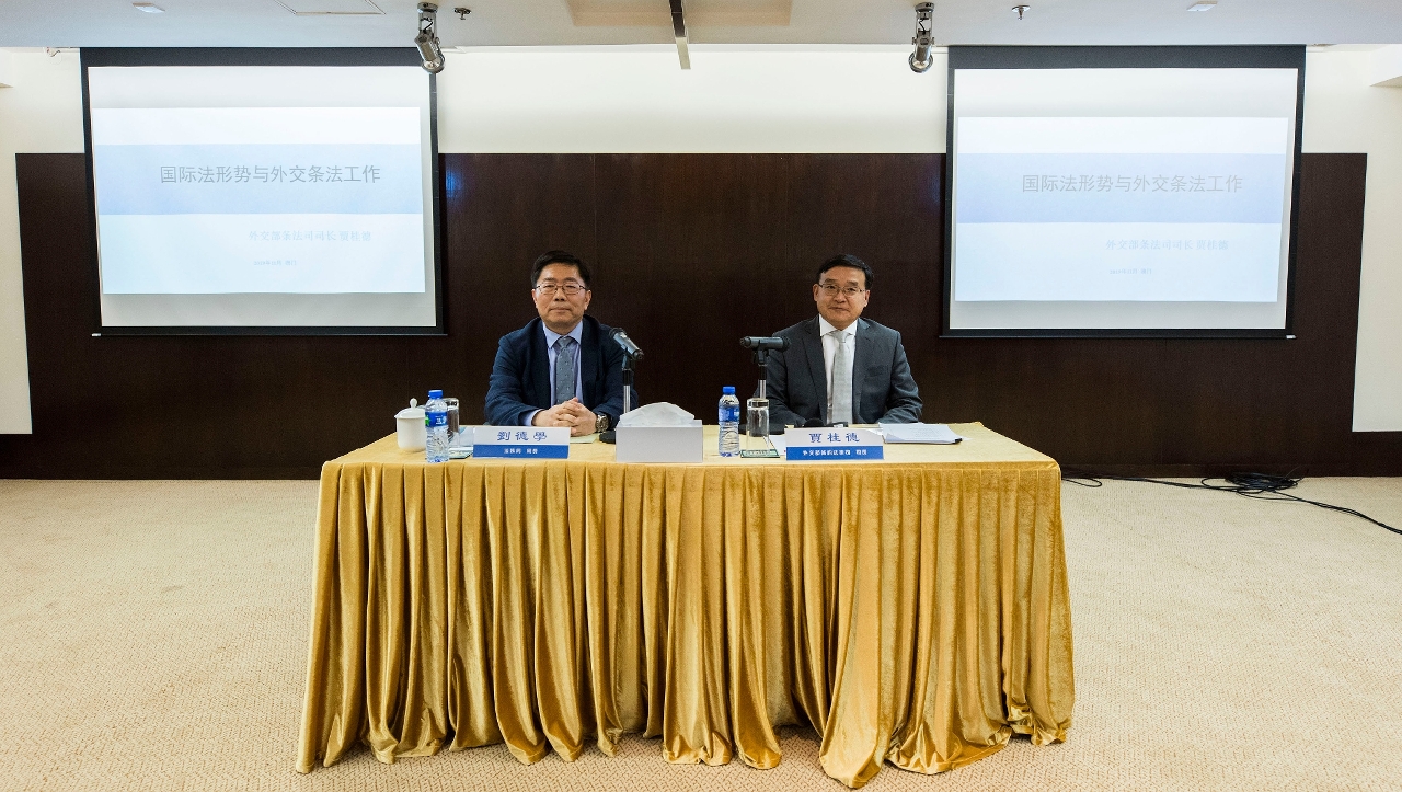 为使澳门特区公务人员深入了解国际社会的最新形势、国际法领域的最新发展及我国的外交条法工作,特区政府邀请了外交部条约法律司贾桂德司长于11月11日作了题为“国际法形势与外交条法工作”专题讲座。