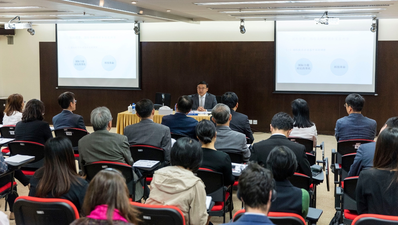 贾桂德司长围绕“国际形势、国际法的作用和发展趋势”和“当前涉国际法因素的热点问题”两大主题,向与会者介绍了外交条法工作的主要进展,并分析了在国际力量对比变化和科技革命发展下国际秩序的深刻调整,以及规则大冲击和规则博弈所导致的世界大变局在国际法上的体现。他还透过“美国单边次级制裁”、“华为5G问题”、“网络空间全球治理”、“国际私法领域新发展”、“海洋法规则最新进展”及“全球环境治理”等热点议题,和与会者进行互动交流。最后,贾司长寄语澳门特区公务人员应紧贴国际社会的发展步伐,不断扩阔国际视野。