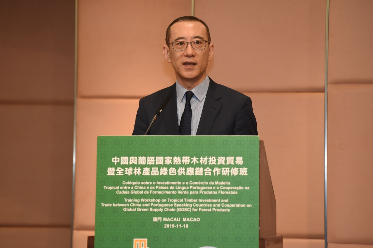 由中葡论坛(澳门)培训中心和国际热带木材组织(ITTO)共同举办、澳门大学承办的“中国与葡语国家热带木材投资贸易暨全球林产品绿色供应链合作研修班”于11月18中午在澳门世界贸易中心莲花厅举行开班仪式。