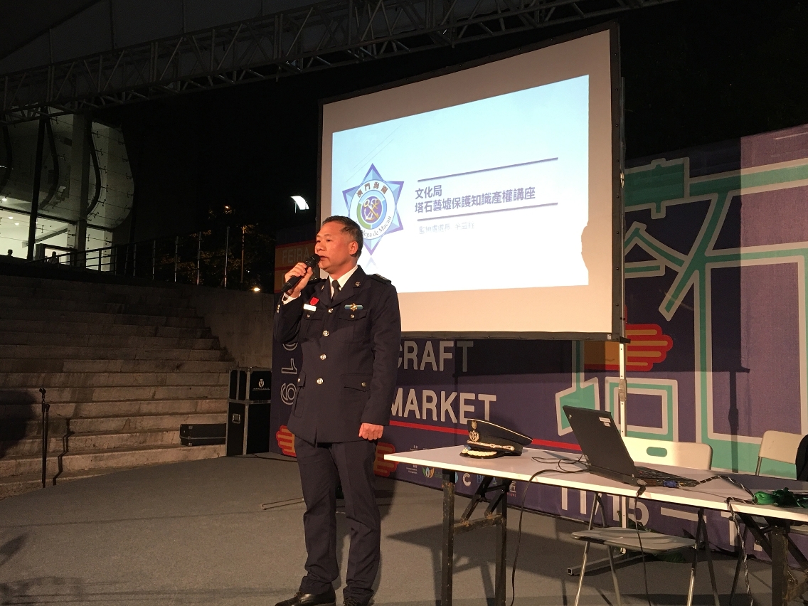 秋季「塔石艺墟」现正举行,为使摊檔营运者对知识产权相关法律有更多了解,建立知法守法的营商氛围,澳门海关于本月14日派员出席讲解及交流会,介绍本澳保护知识产权的相关法律,以及商户经营时应注意的事项,约150名摊檔营运者参与活动。
