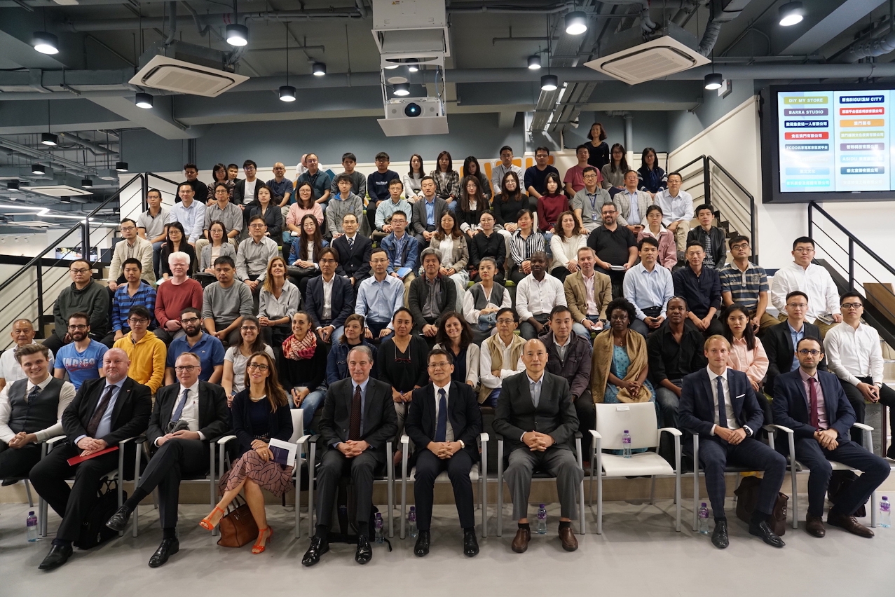 会面后,欧盟代表团举行了介绍会,向澳门的科研人员介绍了欧盟“地平线2020”计划以及即将推出的“地平线欧洲”计划、居礼夫人人才培育计计划和欧盟科研人员网络的概况,以及德国、瑞士、波兰等国家的科研合作资助计划。Philippe Vialatte鼓励澳门科研人员多与欧洲的同行加强联系,多开展合作研究。来自本澳8所高等院校近80名教师、研究人员及研究生出席简介会,他们对开展与欧盟的科研合作表现出浓厚兴趣,踊跃提问。对于发言者的问题,欧盟代表一一作出解答或说明,气氛热烈。