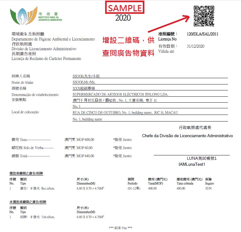 市政署持续优化广告准照之行政手续,于明年一月起正式推出“长期广告及招牌准照-网上续期”服务,方便持牌人不受办公时间限制且无须亲临服务中心便可透过网上系统申办准照续期,并可自行列印相关之续期准照。