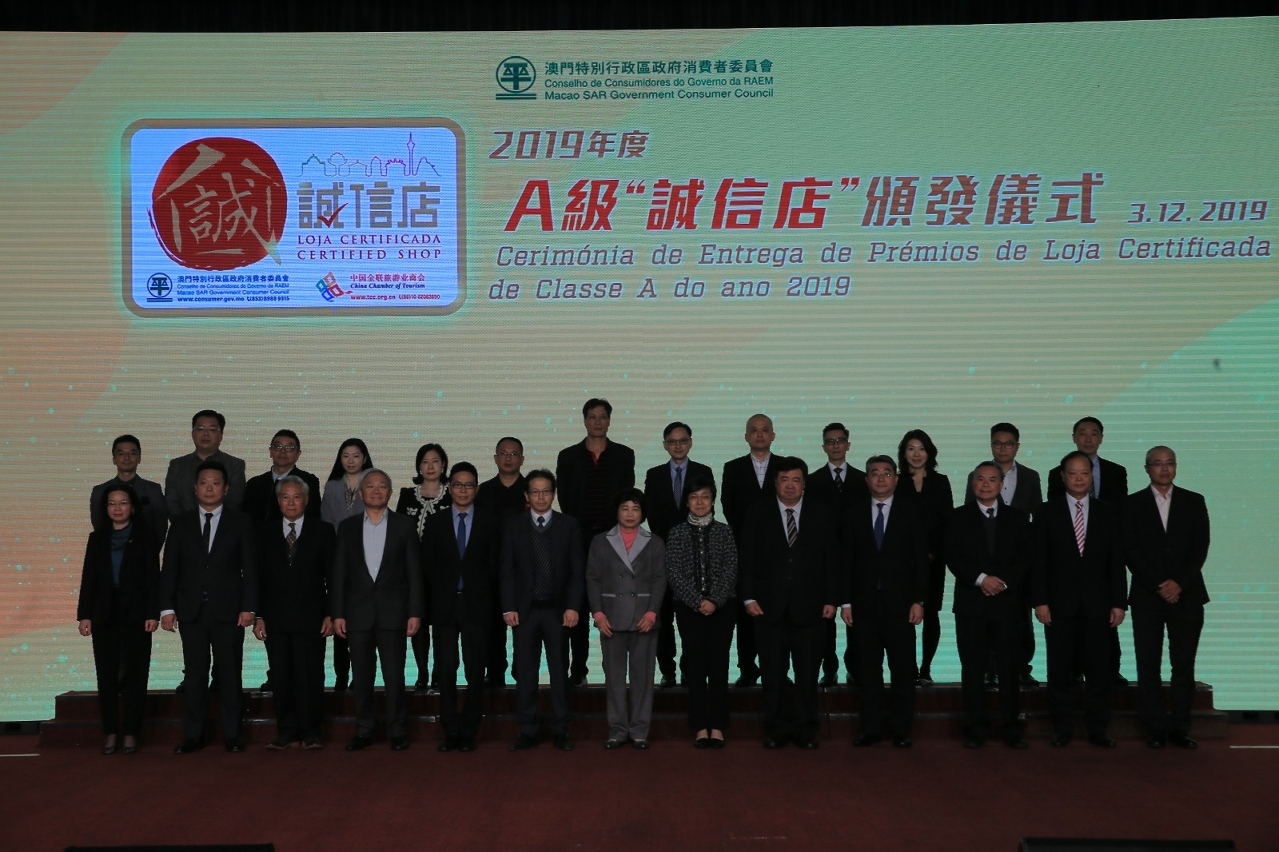 消委会于12月3日举行颁发2019年度A级“诚信店”仪式及公布商号名单,仪式上,同时向符合“星级旅游服务认可计划”联乘“诚信店优质标志计划”条件的商号授予“星级服务商户奖”,消委会及旅游局相信透过这次的合作,对加强消费维权的保障,以及提升澳门旅游零售服务文化可达致最大的协同效益。