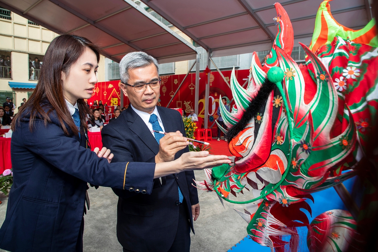 首场的联欢会,局方邀请到多个政府部门及非牟利机构的代表出席,并由保安司黄少泽司长、中央人民政府驻澳门特别行政区联络办公室警务联络部于成平部长、警察总局梁文昌局长、澳门特别行政区海关黄文忠关长,以及惩教管理局程况明局长,一同主持龙狮点睛仪式,为春节联欢会揭开序幕。