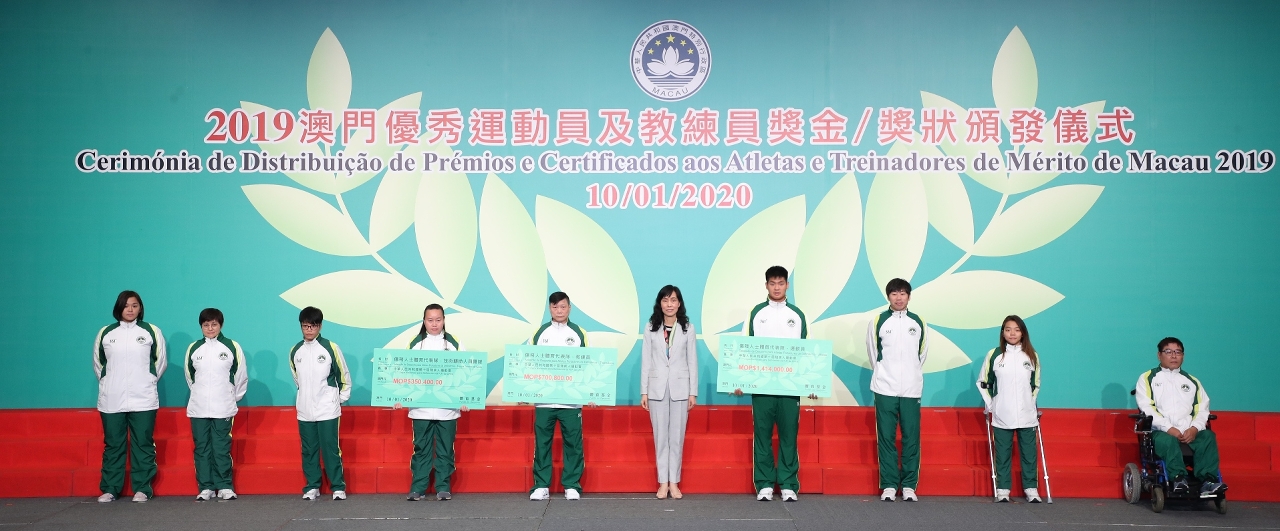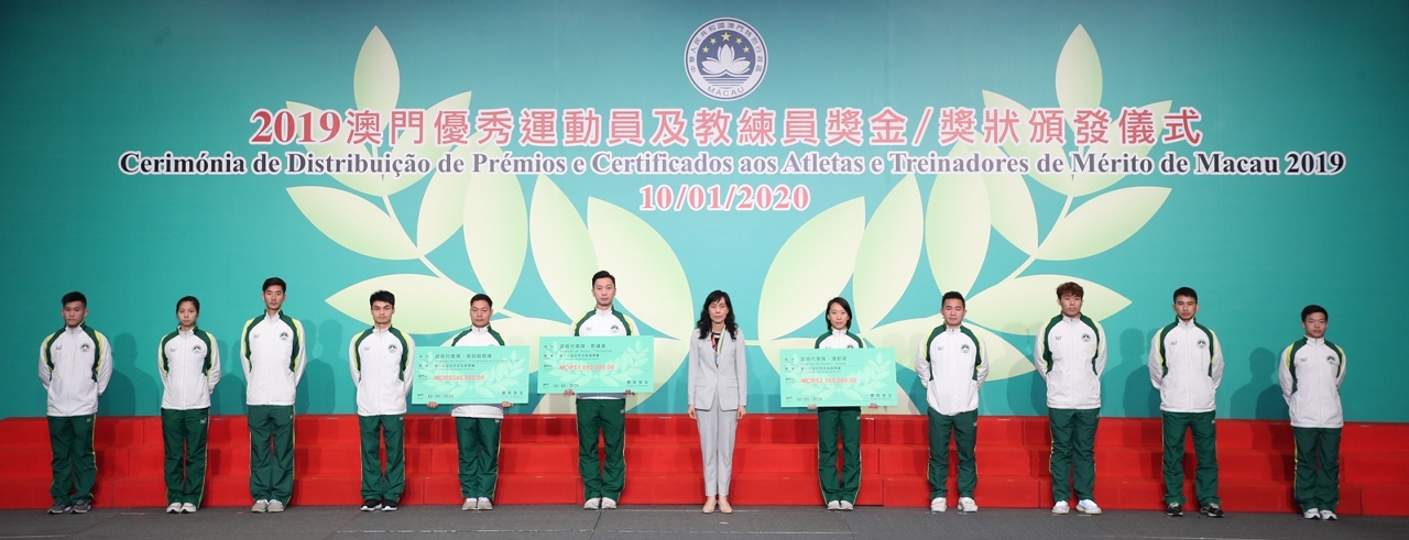 为表彰在2019年度参加体育比赛中获得优秀成绩的运动员及教练员,『2019澳门优秀运动员及教练员奖金/奖状颁发仪式』今日(10日)晚上七时半于澳门旅游塔会展娱乐中心4楼大礼堂举行,行政长官代表、社会文化司司长欧阳瑜等出席了颁发仪式,并祝贺获奖的队伍。