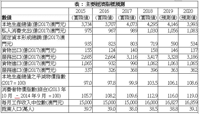 澳门通胀维持平稳,以消费物价指数计算,在2020年通胀率预测为2.6%。以总体经济而言,本地生产总值平减物价指数升幅,预计在2020年为2.3%。