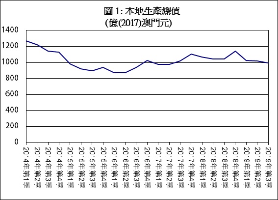 - 随着中国经济增长放缓,中国内地旅客在澳门消费,尤其博彩活动,出现收缩。服务出口在2019年第3季按年下跌4.7%至804亿澳门元,其中占服务出口最大部分的博彩业服务按年减少4.2%至537亿澳门元。