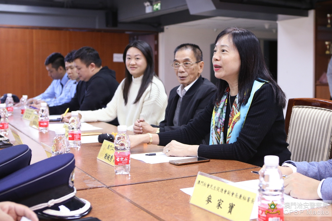 治安警察局于1月14日拜访社会民生促进会,与陈溥森会长、麦家宝副会长等多位代表进行冬防会议。