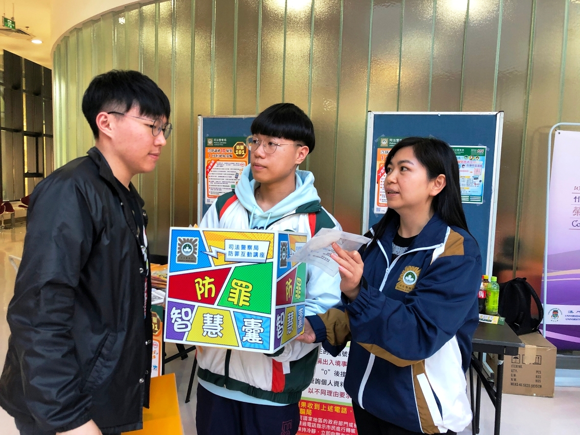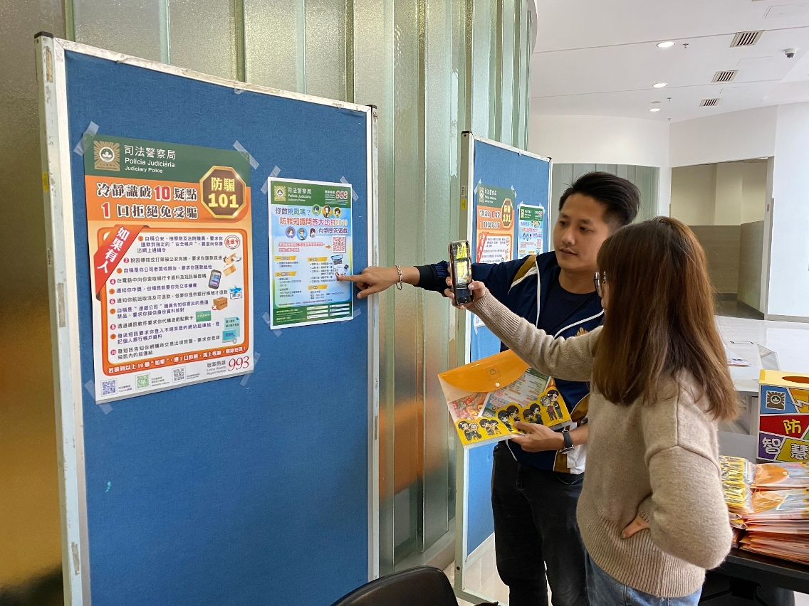 年近岁晚,不法份子往往伺机作案,加上“假冒政府机关人员”的诈骗电话持续出现,为更广泛有效地传播防骗资讯,加强年轻人特别是大专学生的防骗警觉性,司法警察局再次派员走进本澳大专院校设置防骗宣传摊位,让学生知悉最新的电话诈骗手法,免堕骗局。