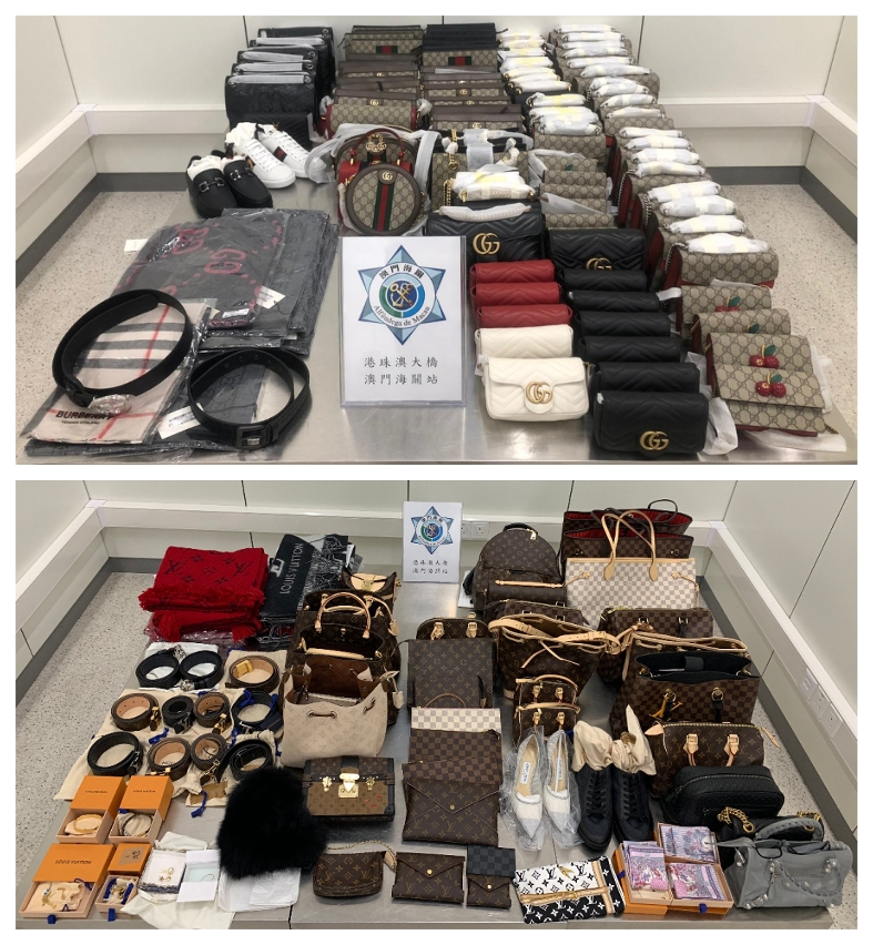 澳门海关在「冬防行动2020」期间,于港珠澳大桥口岸截获两宗走私名牌手袋、皮带、鞋、颈巾及饰品等产品的案件,海关依法对涉案人士作出起诉。