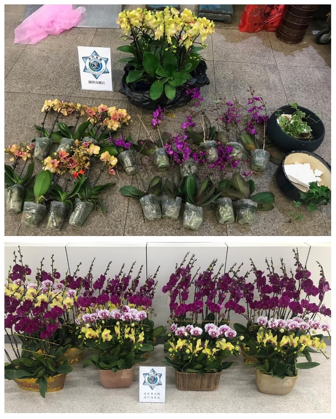 违法携带兰花入境的个案,其中2宗是在关闸口岸截查入境旅客时发现,关员分别从2名入境人士携带物品中查获蕙兰2棵及蝴蝶兰3棵;其余2宗则分别于关闸口岸及港珠澳大桥口岸车道截获,关员透过海关风险管理系统的预警分析,对涉案的粤澳两地牌私家车进行详细检查,分别于两车内发现40棵及118棵蝴蝶兰。四案合共缉获兰花163棵,均属《濒危野生动植物种国际贸易公约》(CITES)附录II所载的物种。